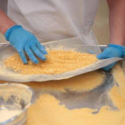 Sifting zeodrated pineapple in the plant.